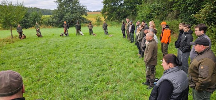 Am Hundewasser in Bofsheim wurden am 15.09.2024 verschiedene Jagdhunderassen vorgestellt. Im Rahmen der Jungjägerausbildung 2024 stellte Thomas Henn verschiedene Jagdhunderassen vor, die anwesenden Hundeführer zeigten anschließend die vielseitigen Vorzüge und Einsatzgebiete der einzelnen Hunderassen vor. Für die Jagdschüler, die Hundeführer und die Hunde war es ein unterhaltsamer Sonntagvormittag.